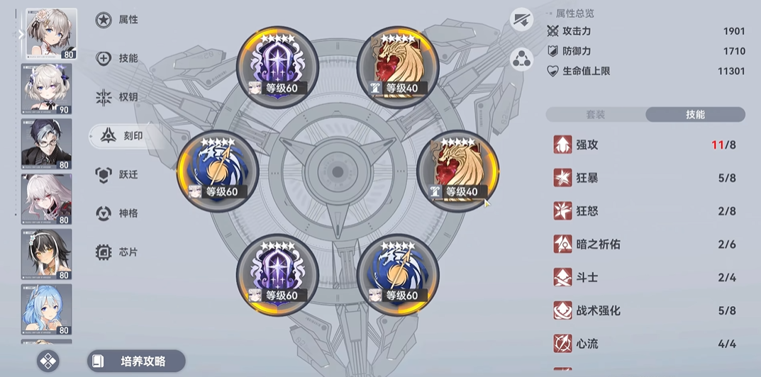 过渡期刻印装配可灵活处理,前期资源不足时,用三星、四星刻印凑套装效果过渡,优先保证核心输出角色触发两套3+3组合,不必强求五星。后期获取五星刻印后,可直接替换低星刻印,养成材料分解时会返还大部分,无需担心资源损耗。刻印融铸功能可在保留强化等级与赋能词条的前提下,更换刻印套装,适合调整角色搭配时使用,减少重复养成成本。装配完成后,可在刻印界面查看总属性与套装激活状态,确保所有效果正常生效,再投入实战检验。