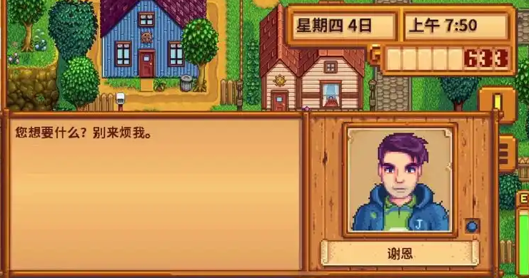第二个四星事件是通过邮件接收谢恩赠送的食谱,包括披萨和爆炒青椒。这些邮件会在好感度达标后随机收到,记得常检查信箱。提升好感度的主要方式是送他喜欢的礼物,比如啤酒、辣椒、披萨等,每周最多送两次,生日当天送礼效果更好。四星剧情的第一个事件涉及敏感内容,谢恩会表露负面情绪,但这是角色成长的重要转折。后续随着好感度提升,他会逐渐振作起来。如果想完整体验他的故事线,建议继续培养好感,六星时还会触发雨天煤矿森林的跳崖事件。