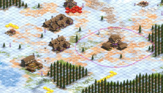 后期战术核心是控制资源点与精准打击。地图中央树林深处藏有12名破坏者,需派遣6名村民交换以获得爆破单位,用于突破敌方城墙。西罗马主力集中于三点钟方向,需用骑射手和僧侣组成混合部队,爆破者炸开城门后优先摧毁城镇中心。若选择速攻策略,需在敌方援军抵达前完成目标;若持久战则需持续补充石矿建造新城堡维持防线。