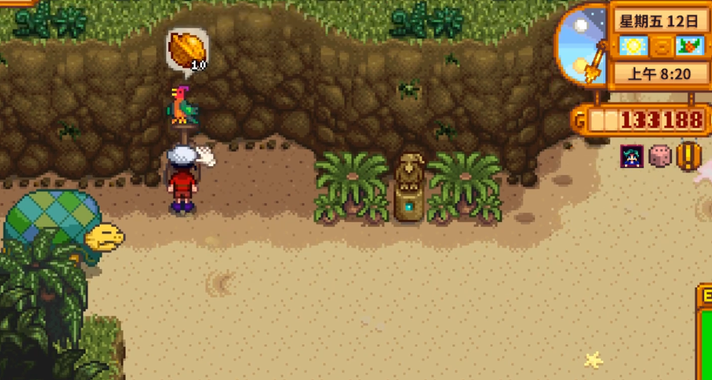 到了姜岛,西边可不是随便就能去的哦。刚下船时会遇到两只乌龟挡路,别着急,先去北边探索一下,收集一些金核桃。攒够10个金核桃后,回到乌龟那里,交给鹦鹉就能赶走它们,这样西边的路就通啦!西边的区域超级大,藏着好多金核桃和秘密,记得带上锄头、斧头这些工具,说不定随便挖一挖就能发现惊喜。