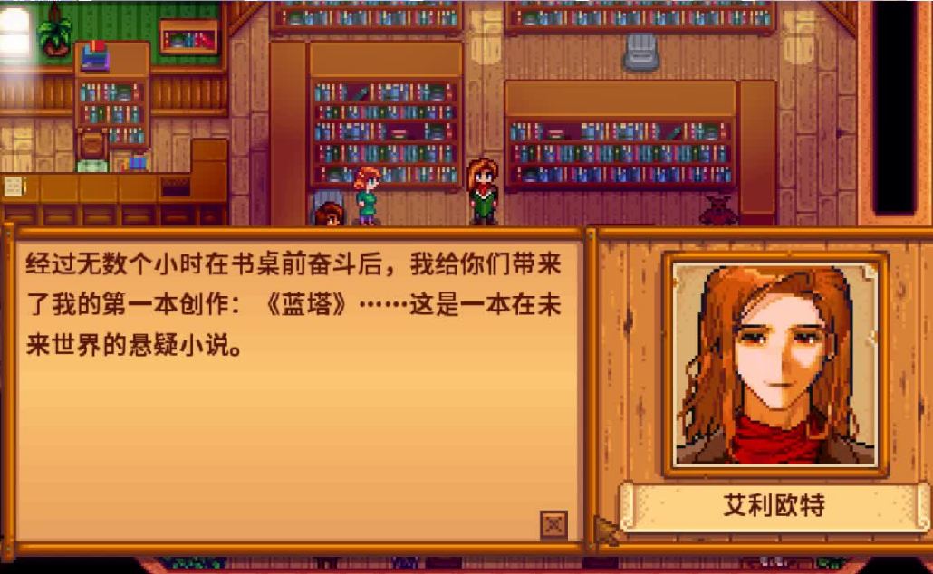 与艾利欧特结婚后,他会为玩家的农场生活带来一系列独特的互动和日常帮助。艾利欧特作为浪漫主义作家,婚后会在农舍东侧拥有一间专属的小型图书馆,里面摆放着书籍和鲜花,体现了他对文学与艺术的热爱。他偶尔会在这间书房里写作或阅读,玩家可以与他对话,触发关于创作灵感或生活琐事的温馨闲聊。艾利欧特会定期为玩家准备早餐或晚餐,例如咖啡或海鲜杂烩汤,这些食物会直接放入玩家的背包中,若背包已满则无法接收。