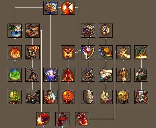 进攻术需点至专家级,通过精准射击强化远程单位命中,解锁注魔之箭为射手附加魔法伤害,配合箭雨实现群体清场,大幅提升射手部队的爆发上限。注魔之箭可让射手附带元素伤害,针对敌方高防御单位效果显著,是后期突破敌方防线的核心技能,与复仇者叠加可实现输出翻倍,形成碾压态势。